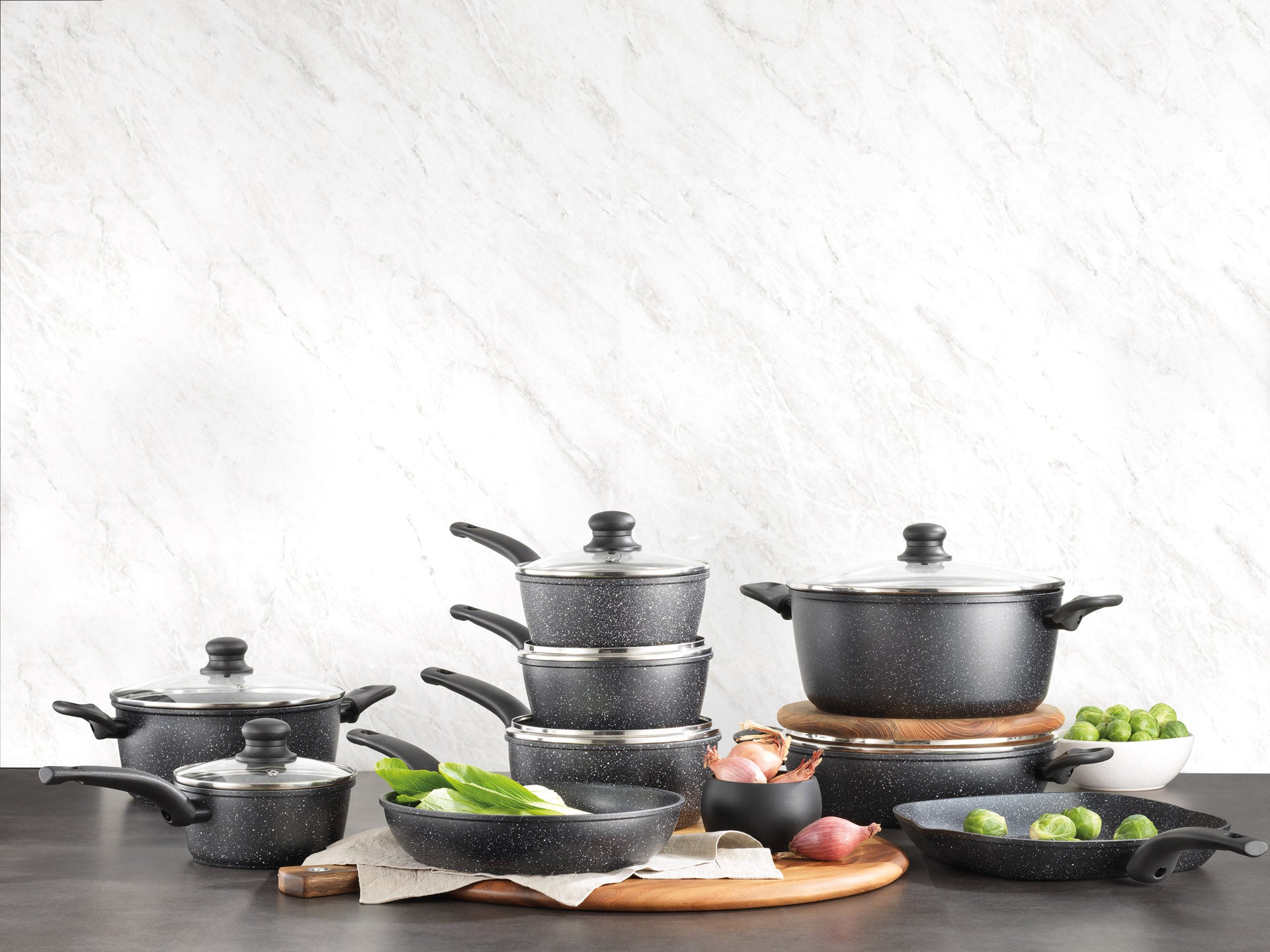 Discover culinary innovation with Equip Marble Range, where quality meets efficiency. Our premium forged aluminium core and toughened marble non-stick cooking surface redefines everyday cooking. Features include dishwasher-safe convenience, riveted handles, and a stainless steel induction plate that ensures all marble cookware is suitable for all cooktops.
