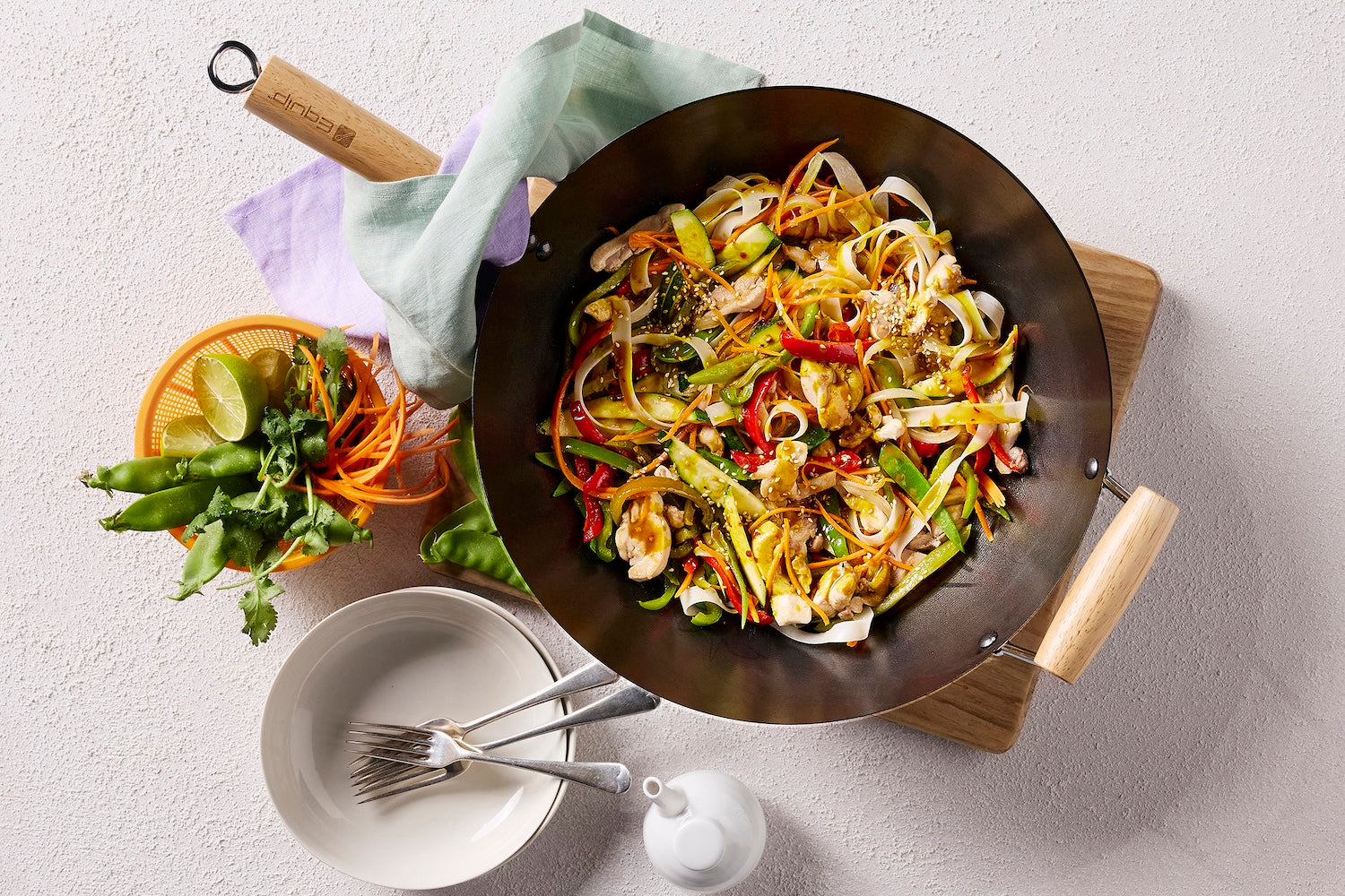 Bring the heat with the Equip 30cm Non-Stick Carbon Steel Wok. Made from lightweight carbon steel, this wok is built for quick, even heating—perfect for sizzling up your favourite stir fries. The non-stick surface offers easy food release, while the high heat-resistant exterior makes it ideal for flash frying your favourite dishes. Designed with a long beechwood handle and helper handle, you can trust that it will deliver secure, comfortable control every time.