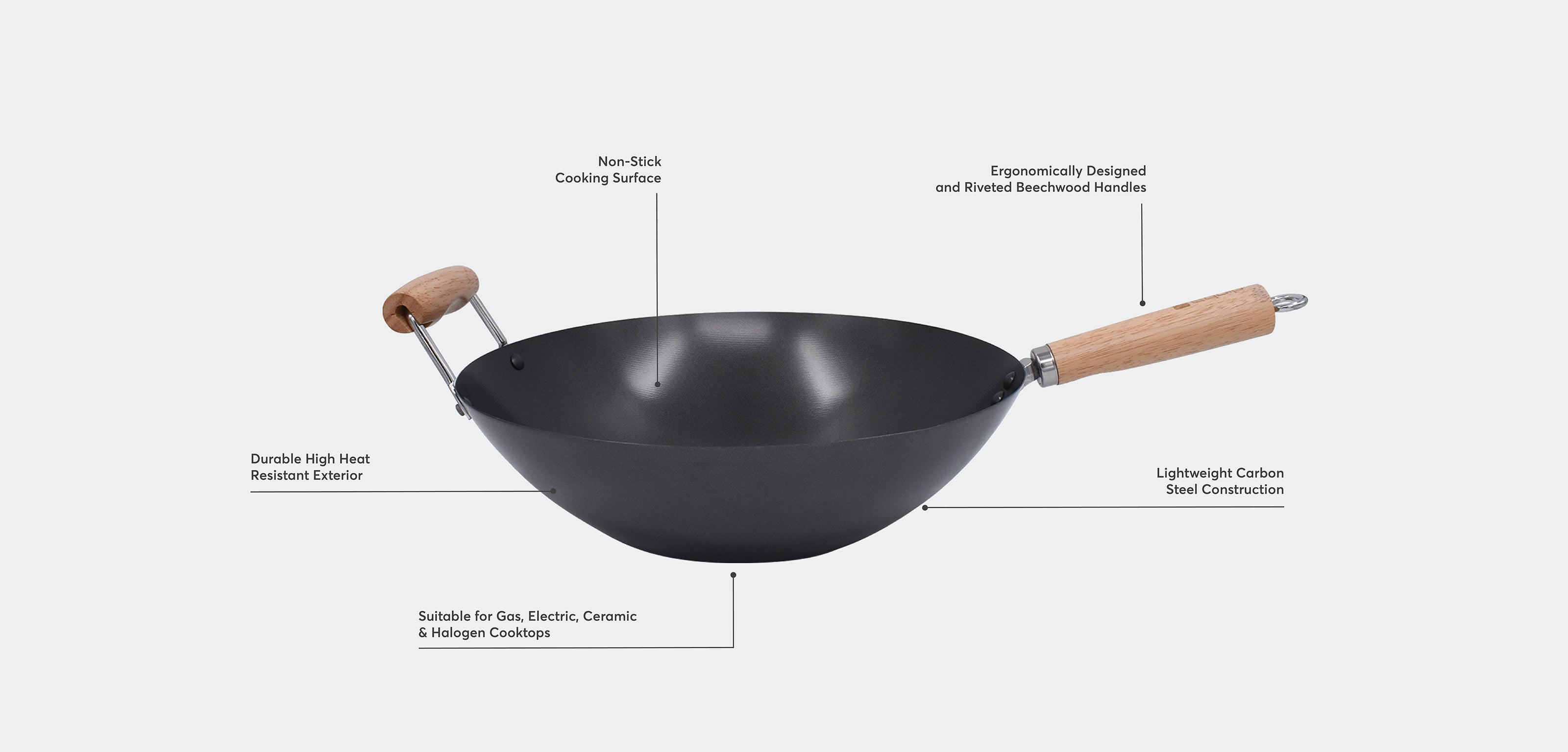 Each piece features a durable, high heat-resistant exterior that’s built to handle the intense temperatures of wok-style cooking. The non-stick cooking surface allows for easy food release and requires little to no oil, making it a healthier, low-fuss option for fast-paced meals.